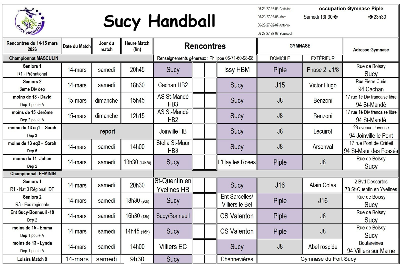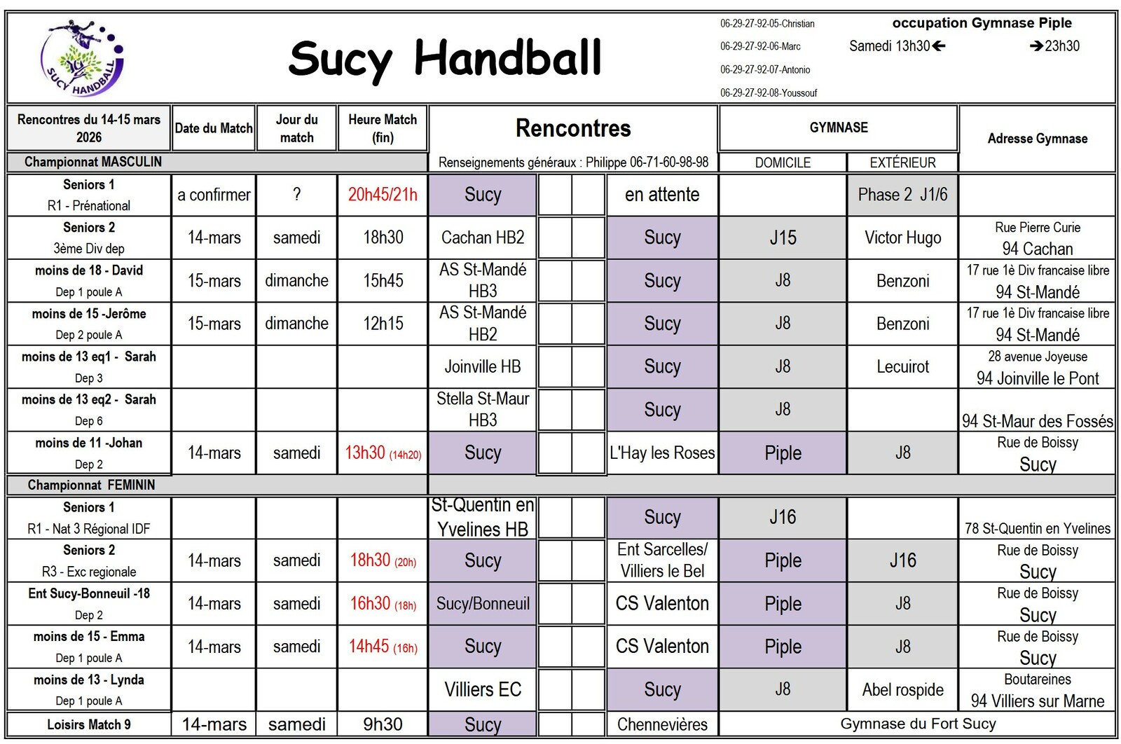 Planning du 14-15 mars