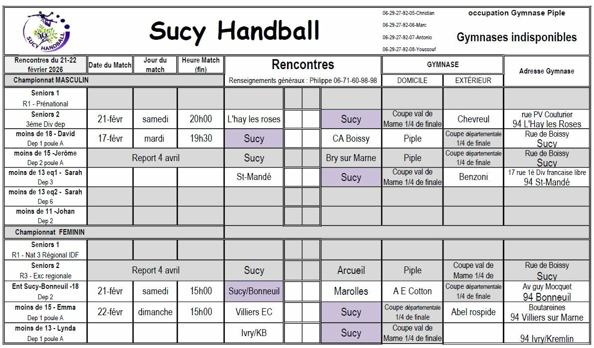 Planning du 21-22 février - Coupe