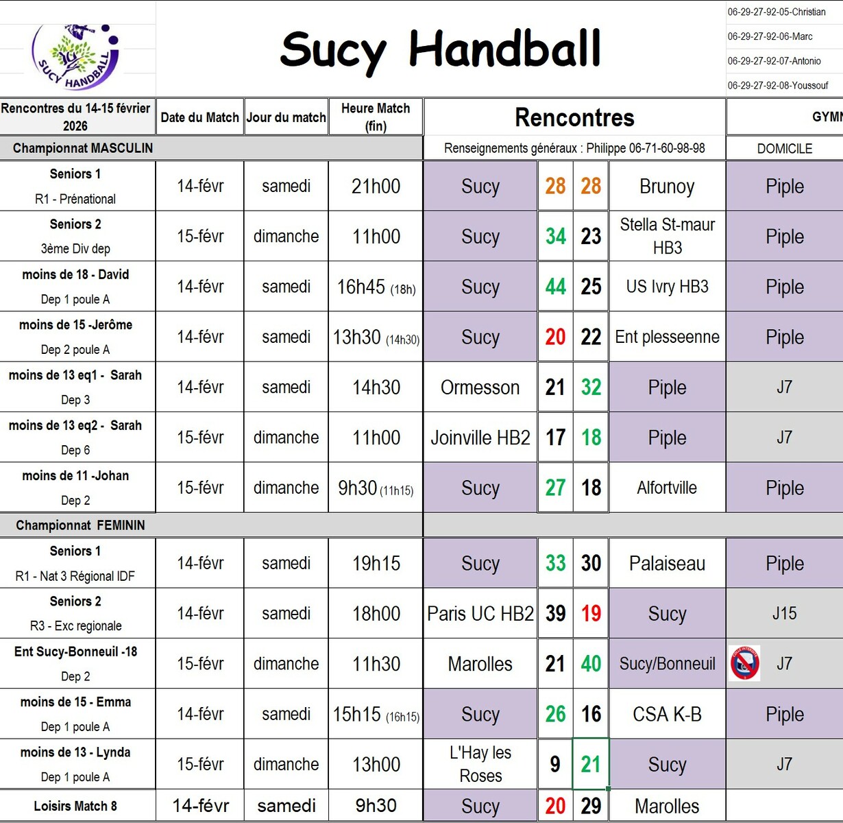 Résultats du 14-15 février