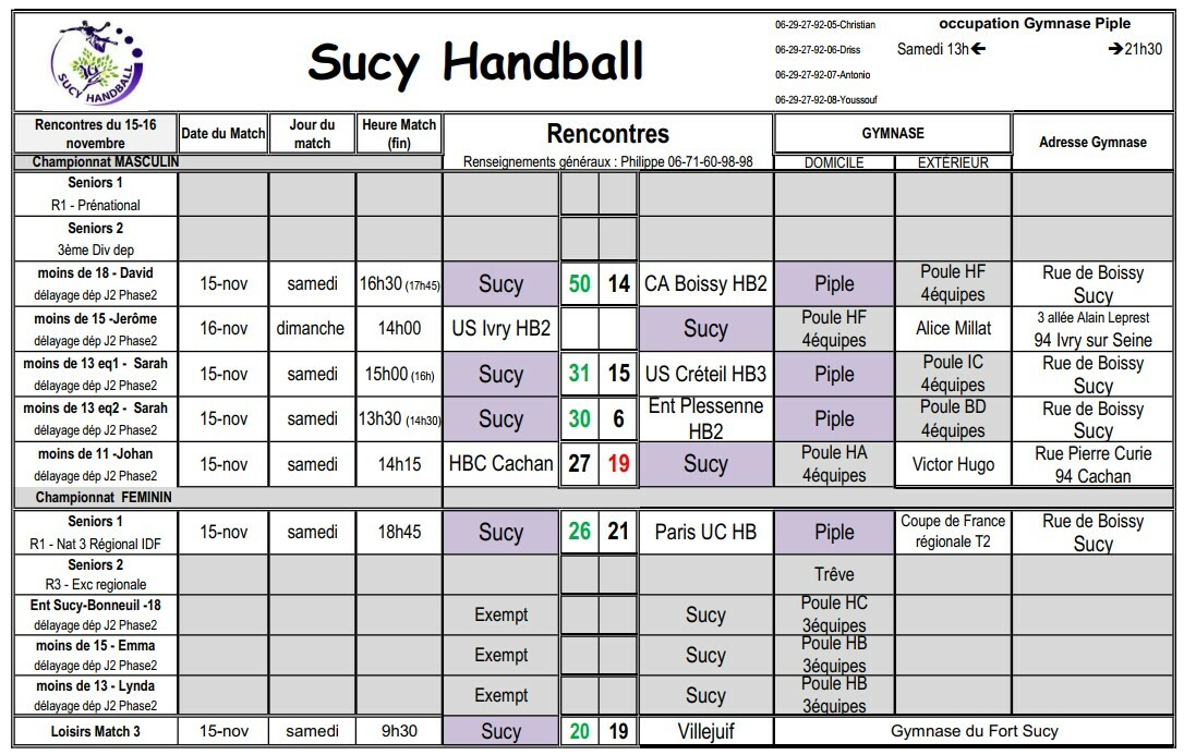 Résultats du 15-16 Novembre