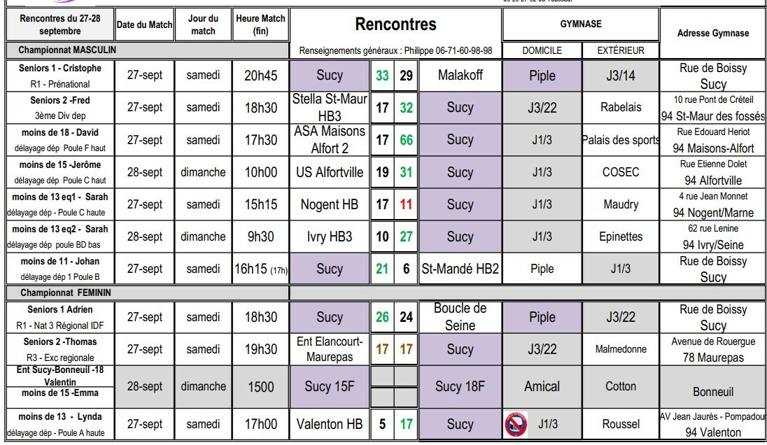 Résultats du 27-28 SEPT