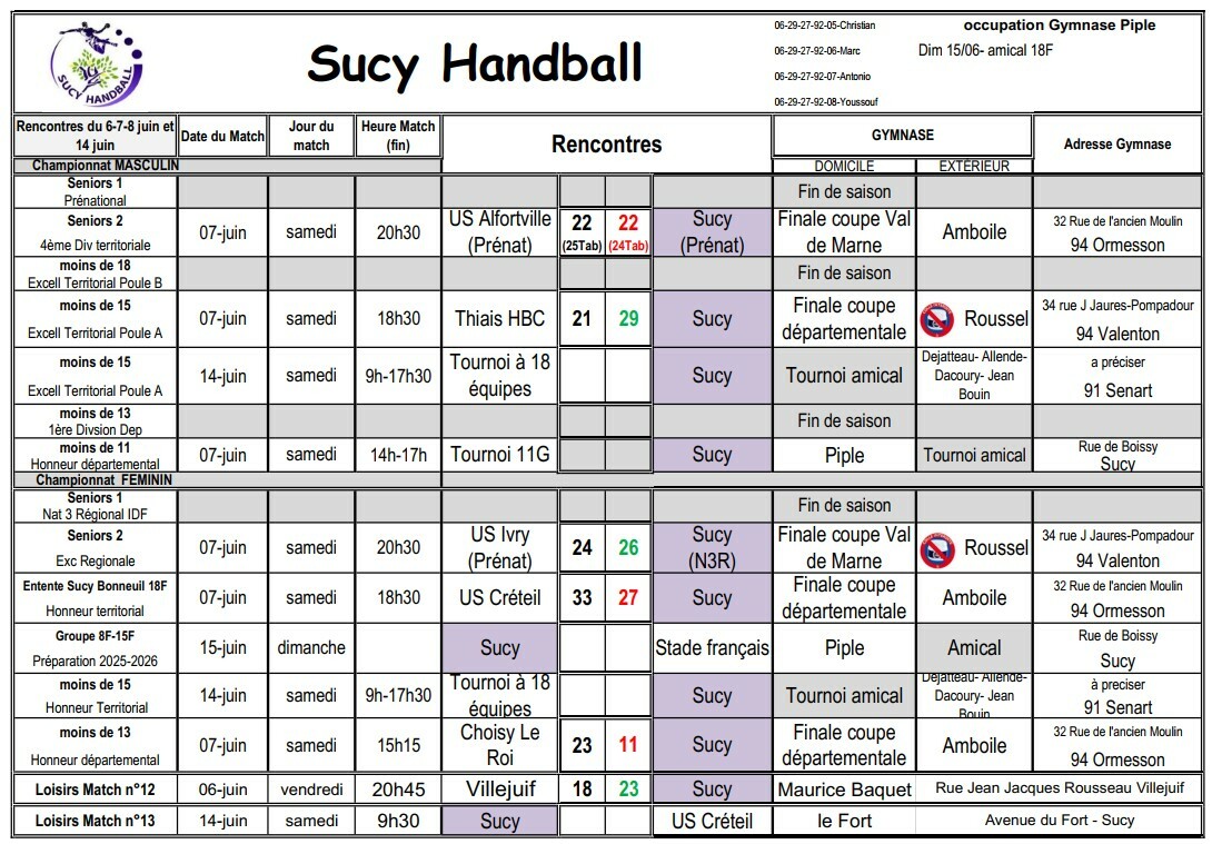 Résultats du 17 MAI - Coupe du 94 - Sucy 5 sur 5