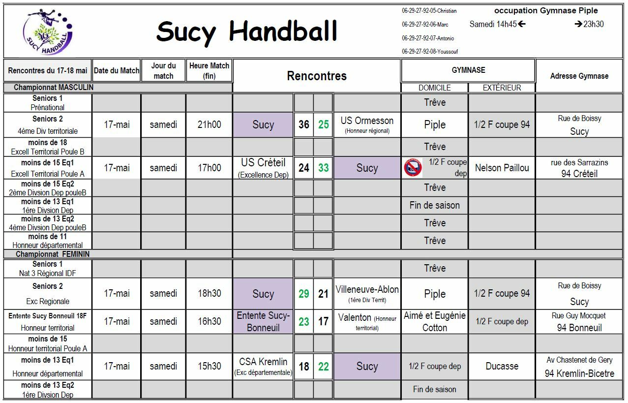 Résultats du 17 MAI - Coupe du 94 - Sucy 5 sur 5