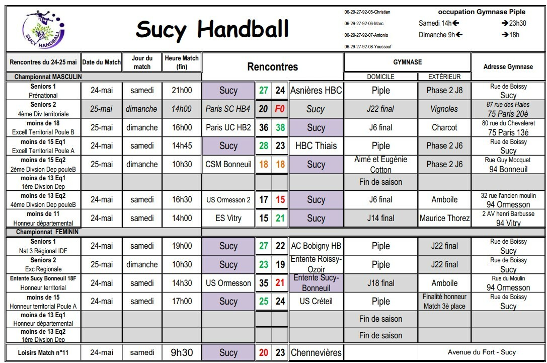 Résultats du 24-25 MAI -Fin de saison